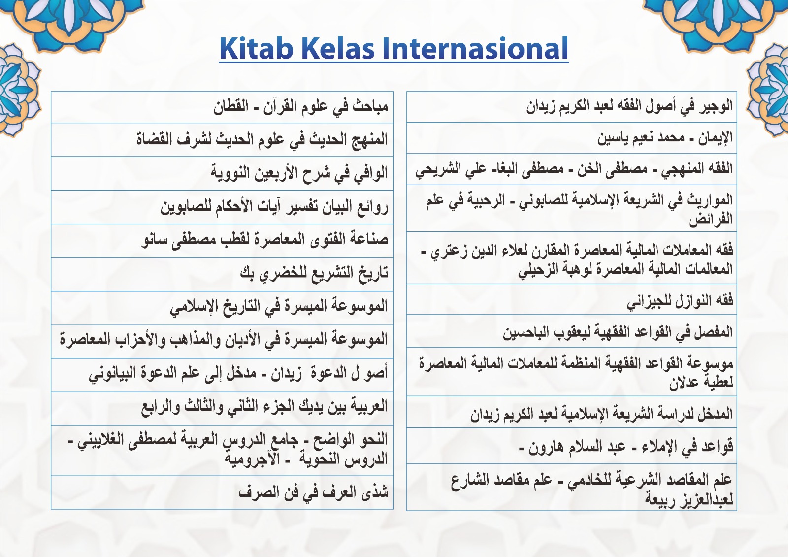3. Kelas Internasional/ mahad aly(Maaf kelas ini ditutup,kuota sdh penuh)